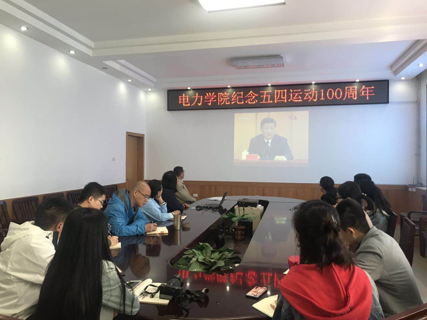 430日,学院党委组织师生党员在电机馆二层会议室共同收看习近平总书记在纪念五四运动100周年大会上的讲话。学院党委书记赵惠民、各党支部书记、系部中心负责人、全体行政人员及师生党员代表参加了活动。