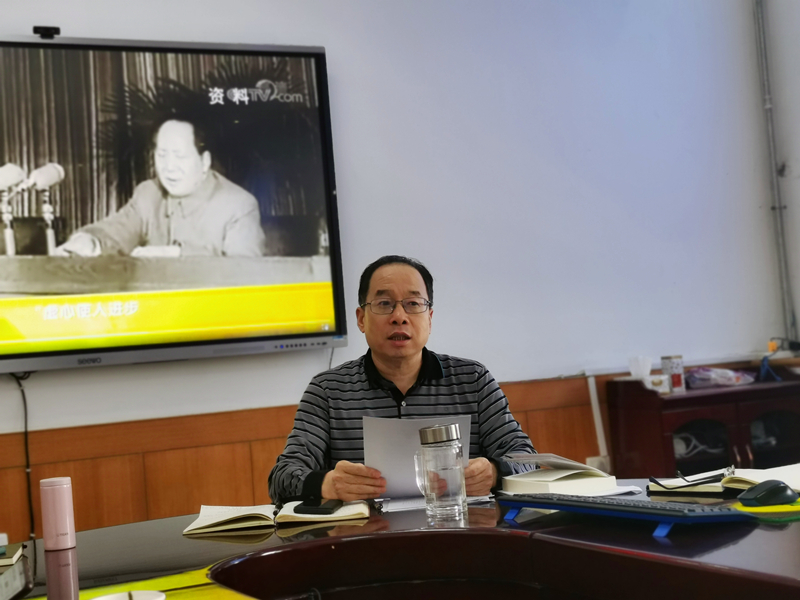 在观看《党史故事100讲》之八大盛会、确立重心后,吉育峰围绕会议主题作了专题辅导,他向全体党员介绍了党史学习教育的方法、宗旨和目的并结合社会主义革命和建设时期的历史进行分析,重点阐释了“学党史、悟思想、办实事、开新局”的深刻内涵和重要意义,他希望全体党员都能认真学习,以良好的精神面貌和优异的成绩迎接中国共产党百年华诞。