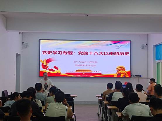根据党史学习教育计划安排,控制研究生党支部于2021年6月21日在电机馆230会议室召开专题学习会,学习党的十八大以来的历史。党支部组织委员韩鹏东主持,支部全体党员参加。