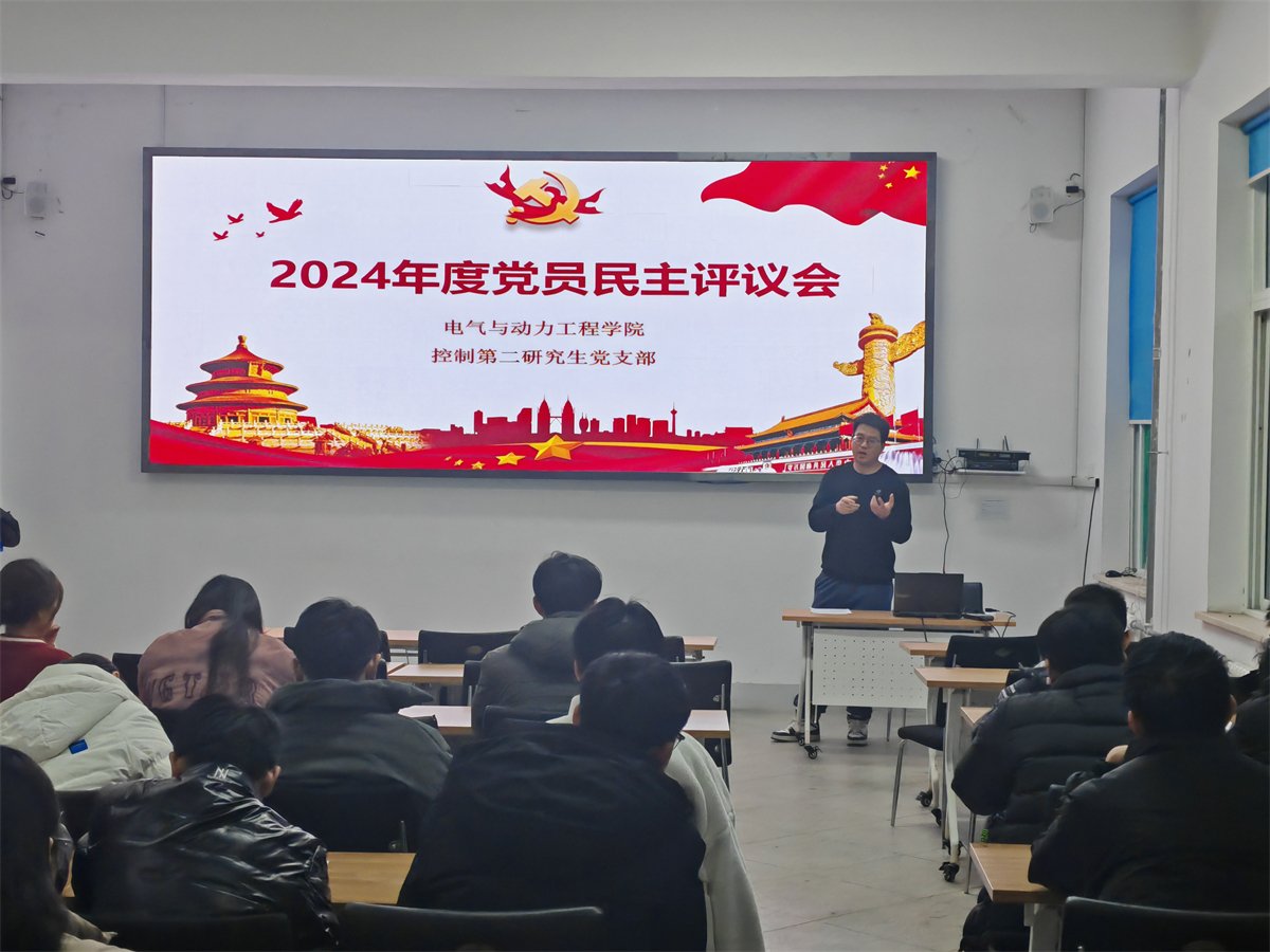 2025年1月9日下午,控制第二研究生党支部于电机馆230会议室组织召开2024年度民主评议党员会。本次会议由党支部书记武晋德主持,党支部全体党员参加,学院副院长续欣莹出席会议。