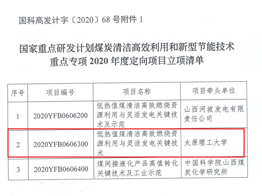 近日,科学技术部正式下发通知,由我院热能工程系马素霞教授主持申报的国家重点研发计划“煤炭清洁高效利用和新型节能技术”重点专项的“低热值煤清洁高效燃烧资源利用与灵活发电关键技术”项目正式获批立项。项目研究总经费8485万元,国拨专项经费1595万元。