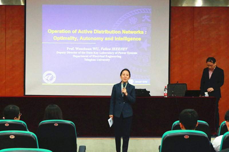 4月10日,我院邀请清华大学吴文传教授在迎西校区科学楼二层报告厅作了题为《主动配电网运行:优化、自律与智能》的学术报告。学院相关研究领域的老师与学生聆听了报告。本次报告由电力系统运行与控制山西省重点实验室主办,报告会由韩肖清院长主持。