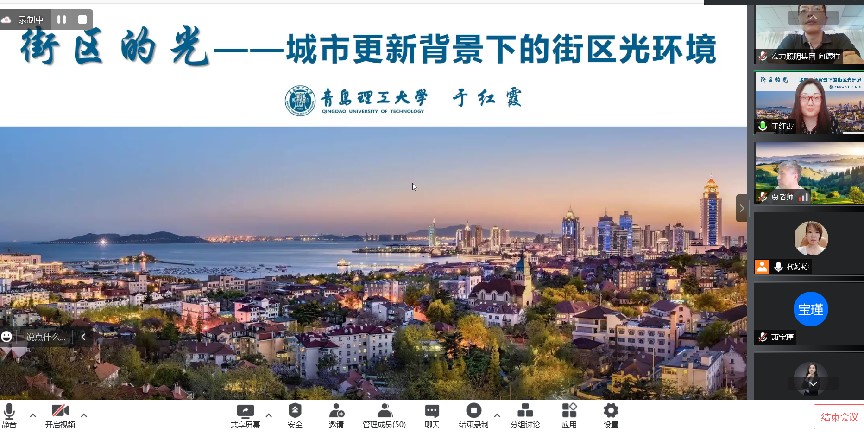 青岛理工大学教授、硕士生导师、中国照明学会教育与培训工作委员会委员、山东照明学会理事于红霞为大家分享了《城市更新背景下的街区光环境》。为明确“十四五”时期要深入推进以人为核心的新型城镇化战略,以宜居、绿色、韧性、智慧、人文为目标的城市建设,于老师通过青岛街区夜间光环境案例展示指出,需遵循地域、文化、艺术、技术、生态、安全等属性进行城市微更新,从夜景照明、文旅夜游、光环境艺术等方面的需求,来提升城市的品质,为光艺术装置增加街区活力。