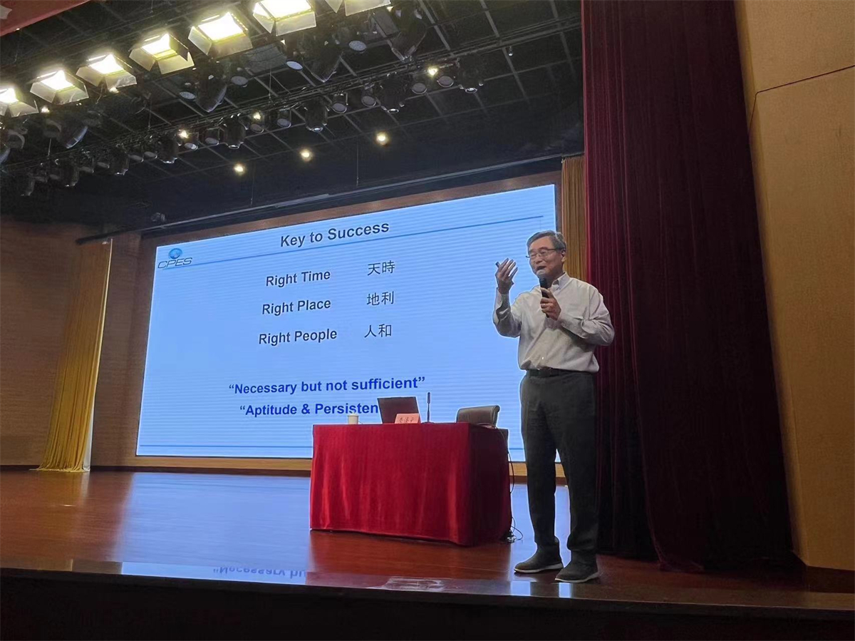 聘任仪式结束后,李泽元院士为师生带来了一场题为《My Journey to Power Electronics》的专题讲座。讲座中,李泽元院士详细介绍了现代电力电子技术的发展脉络和他本人在电力电子技术技术领域的研究历程,以他本人从事电力电子技术研究和人才培养长达半个世纪的深切体会,并鼓励同学们:机遇只给有准备的人(Opportunities only come to those who are prepared),天时、地利、人和是走向成功的必要条件但不是充分条件(Right time, right place and right people are “necessary but not sufficient”),从事科学研究的人,要想取得成功,天赋+坚持(Aptitude & Persistence)是至关重要的。
