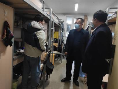 2月19日、20日,我校新学期开学,学院学生陆续返校入学。为做好疫情防控期间的学生宿舍管理工作,全面掌握学生新学期的学习、生活、心理等方面状况,21日下午,我院党委书记徐鑫、党委副书记郭春耀及全体辅导员来到学生宿舍走访慰问,了解返校学子假期学习和生活情况,为他们送上学院的关心和温暖。