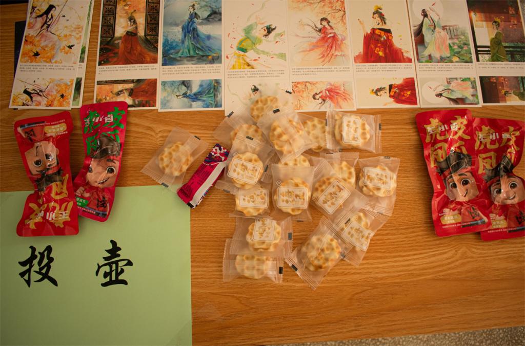 书法绘画活动结束后,学院于9月11日在电机馆一楼大厅举办了 “月满情圆,欢聚中秋”专项文化活动。本次活动由各种各样有趣的小游戏组成。射之余意,礼俗寓之的投壶、创意盲盒,乐在其中的气球盲盒、隐语弄思,浅察情深的猜灯谜、九月清寒中秋情暖交换祝福卡片等。同学们在猜灯谜活动中,有的冥思苦想,有的沾沾自喜,有的低声讨论,这体现了电力学子团圆、友爱、温馨、和睦的一幕。通过这些活动,同学们真正感受到了“月是他乡暖”,这一刻“但愿人长久,千里共婵娟”的团圆之情。
