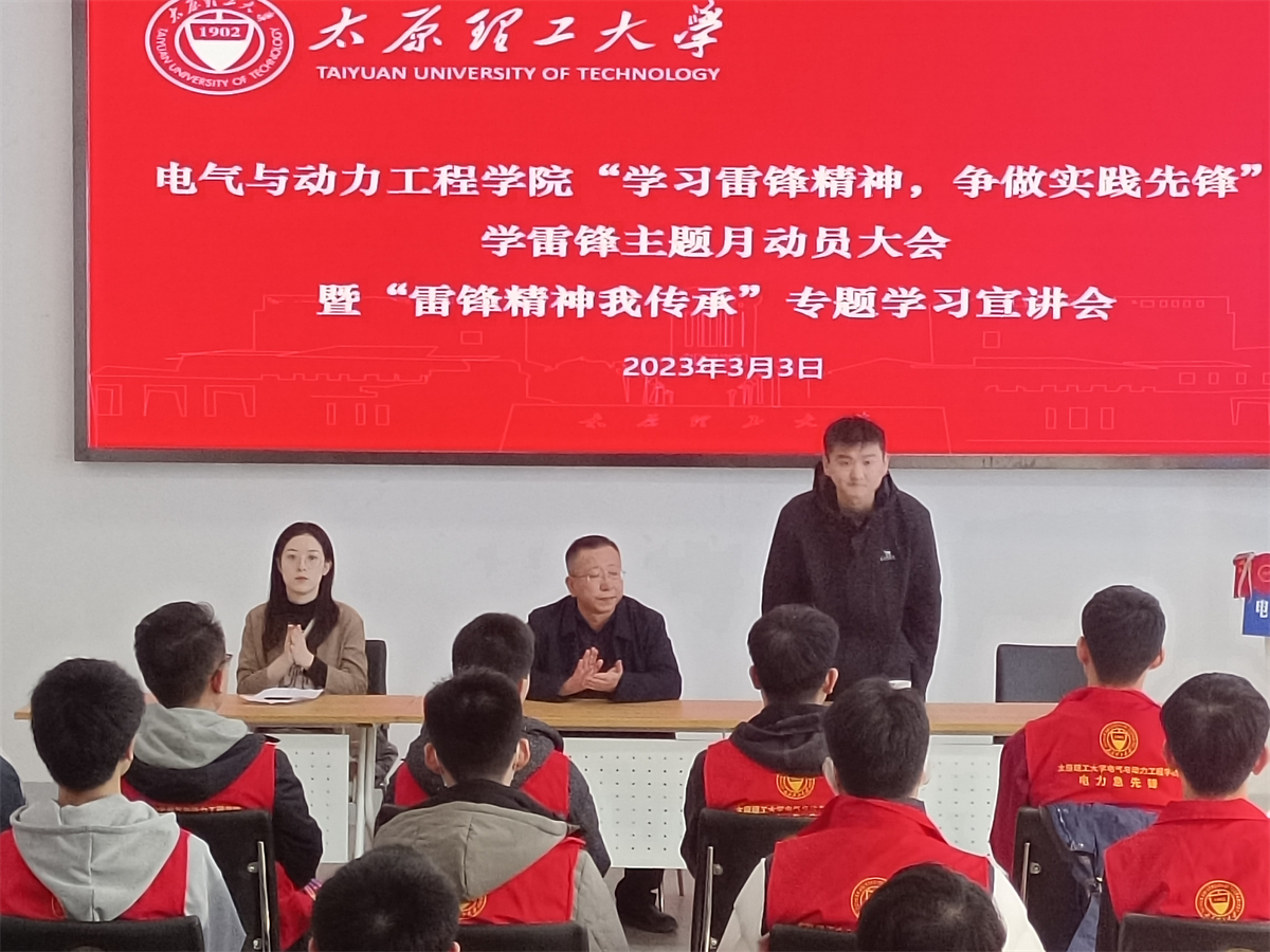 三月春风暖,奉献正当时。我院于2023年3月3日在迎西校区电机馆举行了隆重的“学习雷锋精神,争做实践先锋”学雷锋主题月动员大会暨“雷锋精神我传承”专题学习宣讲会,院党委书记徐鑫、党委副书记郭春耀出席。徐鑫强调,电力急先锋作为志愿服务类组织要脚踏实地,将自身专业与志愿活动相结合,形成自己独有的特色,更好的服务全体师生,为学校“双一流”建设添砖加瓦。电气s1901班孔维阳同学被评选为太原市青年志愿者协会大学生志愿服务总队队长,进行了个人事迹和雷锋故事宣讲,勉励大家积极参加各类志愿活动,将小我融入大我,实现人生价值,奉献社会国家。最后,与会志愿者进行了隆重的志愿者宣誓仪式。