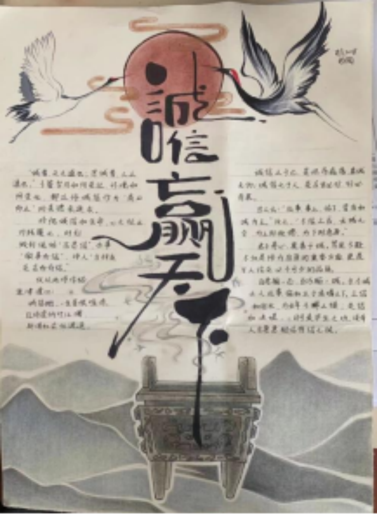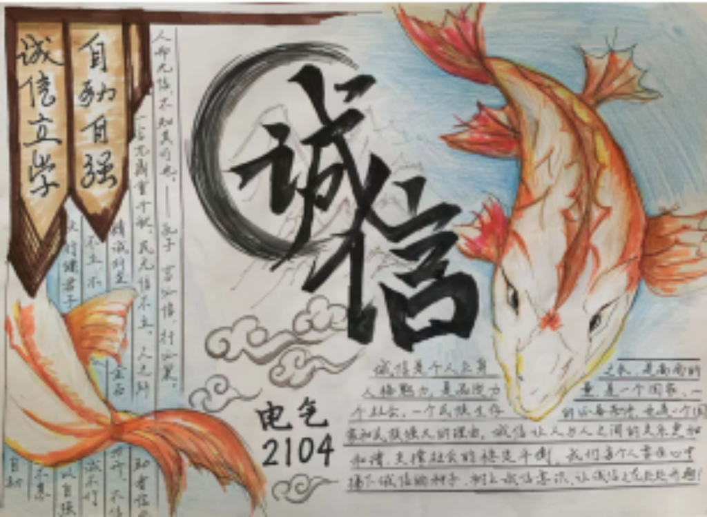 基地还举办了以“诚信”为主题的征文活动和手抄报比赛。此次活动获得了同学们的热情响应,活动期间同学们积极准备、踊跃参与,本次比赛共收到书画作品18幅,征文22篇,经过推选,评选出一、二、三等奖若干。一张张图文并茂的精美手抄报,一笔一划地将诚信教育的内涵与意义呈现出来,用文字和色彩宣传诚实考试、诚信做人。