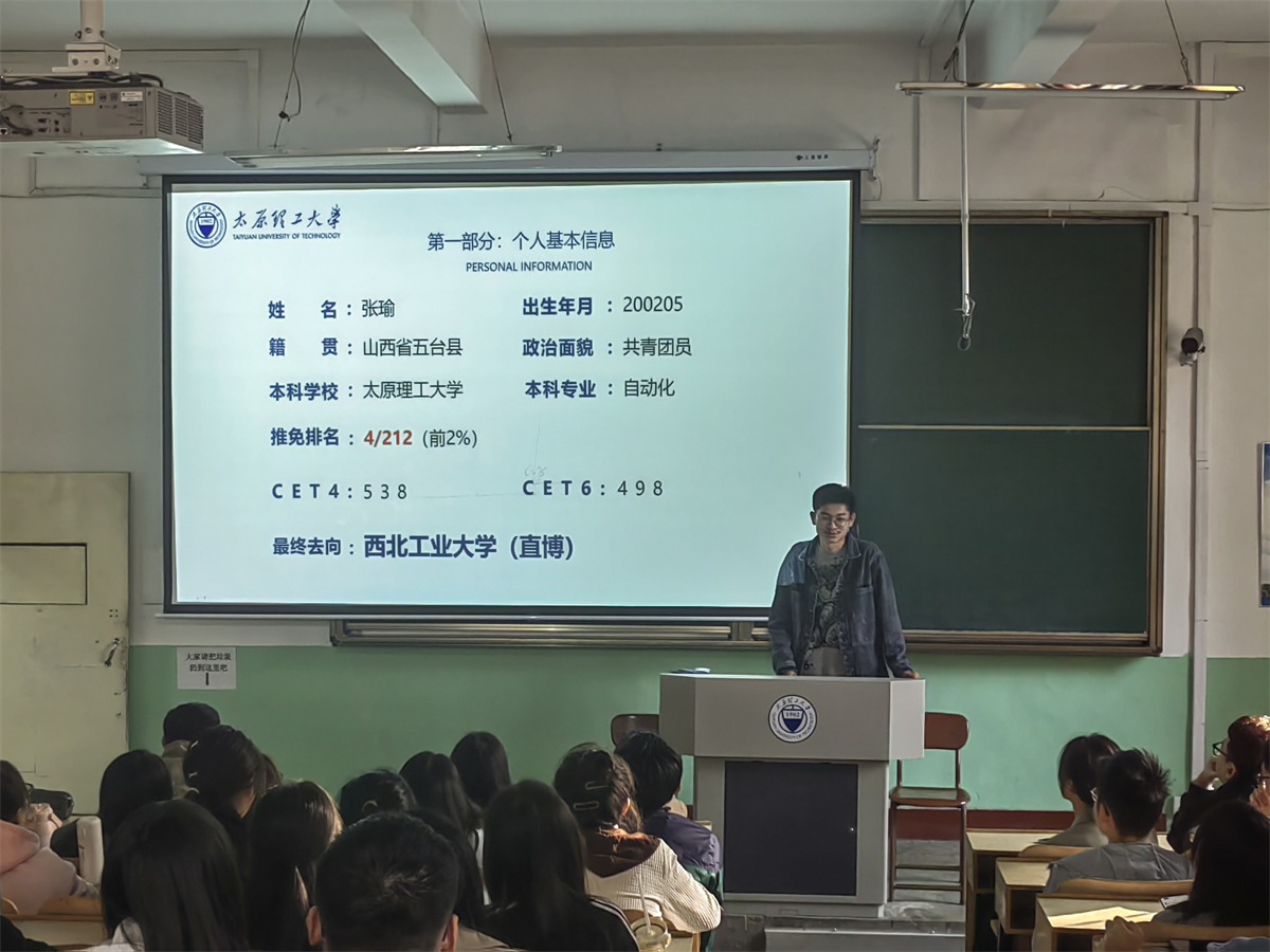 自动化2006班的张柏珵先后获得过2021年度中国工商银行奖学金和2022年度“金力”奖学金,在互联网+、挑战杯、全国大学生机械创新设计大赛、中国机器人及人工智能大赛、中国高校智能机器人创意大赛、中国计算机设计大赛等多项学科竞赛中荣获11项国家级奖项,鼓励各位同学明确发展方向,找准兴趣点,然后在这个领域持续深耕;电气2008班的杨陶曾获西门子杯全国特等奖、数学建模山西一等奖、电工杯全国二等奖,科研项目有山西省大学生创新训练计划《ZrO2“晶格氧”循环对Ni基催化CO2活化机制》和两项实用新型专利,他分享了在保研申请材料方面的经验,他说到升学深造是一个比较漫长的过程,需要持续不断的努力。此外分享的还有能源2001马新月、能源2002张奕捷、自动化2002张瑜、电气2007巩凡逸。