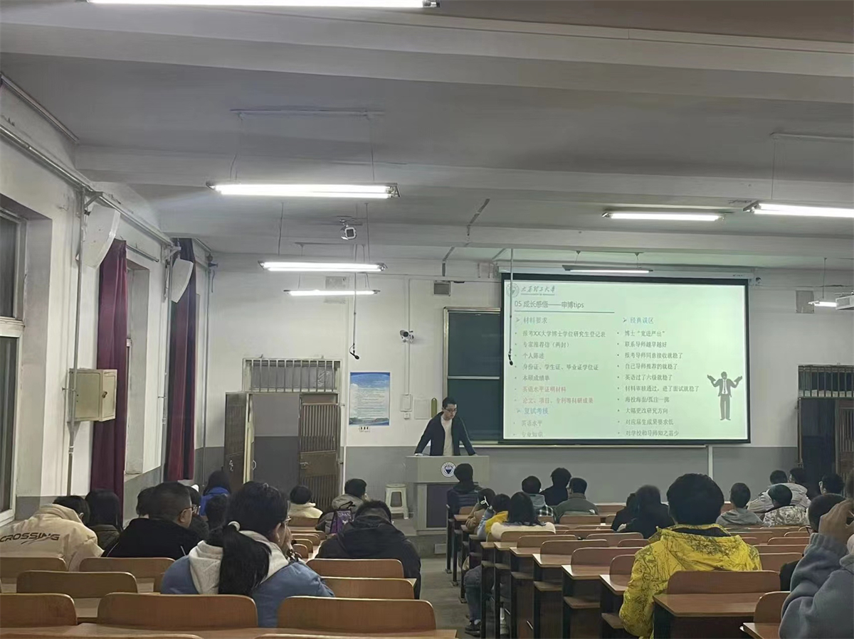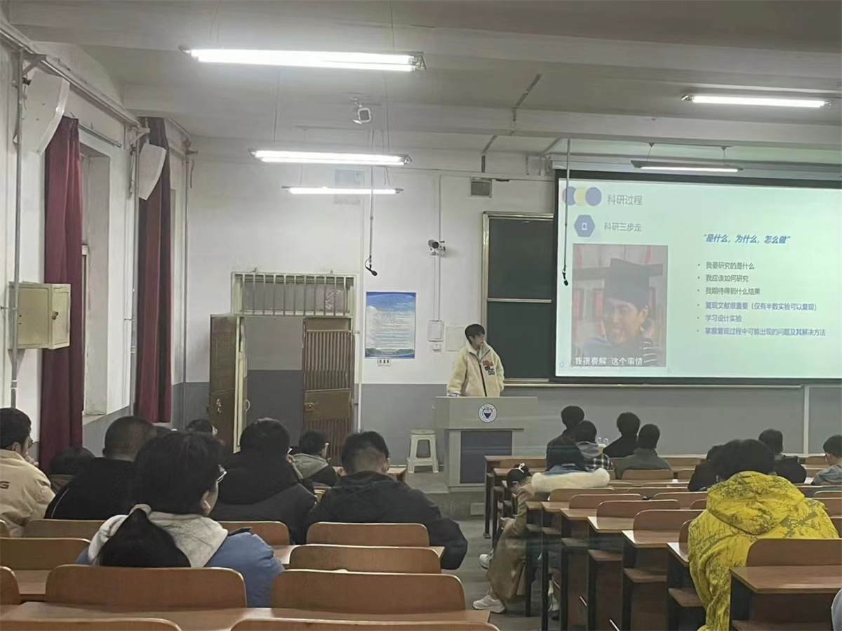 武宇翔围绕研究经历、成果介绍、全面发展以及成长感悟四个方面向大家进行了分享。在研究生期间,武宇翔发表了4篇论文,完成了2项科研项目并撰写了3项项目专利。报告中他提到要注重提升交叉学科素养,要强化文献检索和文献阅读能力。最后武宇翔向大家分享了自己的申博经验,着重强调要增强个人的英语水平与专业素养。