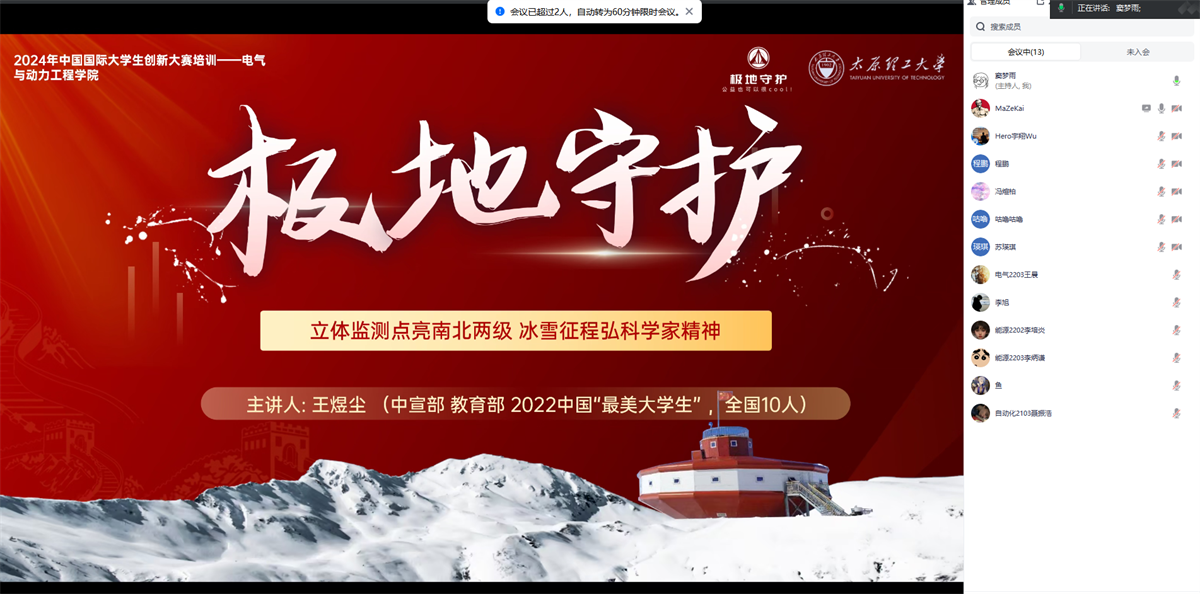 为了激发同学们对大学生创新大赛的参与热情,提高同学们的实践能力和创新思维水平,6月7日晚上7点,我院线上召开大学生创新大赛培训交流会,培训交流会由赛事联络人窦梦雨主持,邀请了第九届中国国际“互联网+”大学生创新创业大赛全国银奖获得者王煜尘及其团队成员马泽楷,院重点培育项目组团队成员参会。