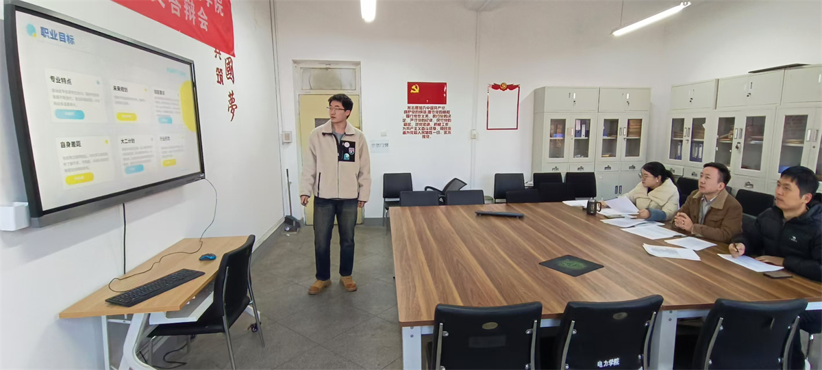 参赛选手精神饱满,各展风采,他们通过翔实的PPT陈述展示了他们对未来专业领域的深入理解和扎实的技能储备。他们不仅阐述了个人职业理想,还分享了他们在专业课程中学习的实践成果和创新思维。本次大赛评委团由学院就业专员孙龙龙和辅导员史有强、窦梦雨组成,他们从专业技能、职业理解、创新思维等多个维度对选手进行了公正、全面的评价。