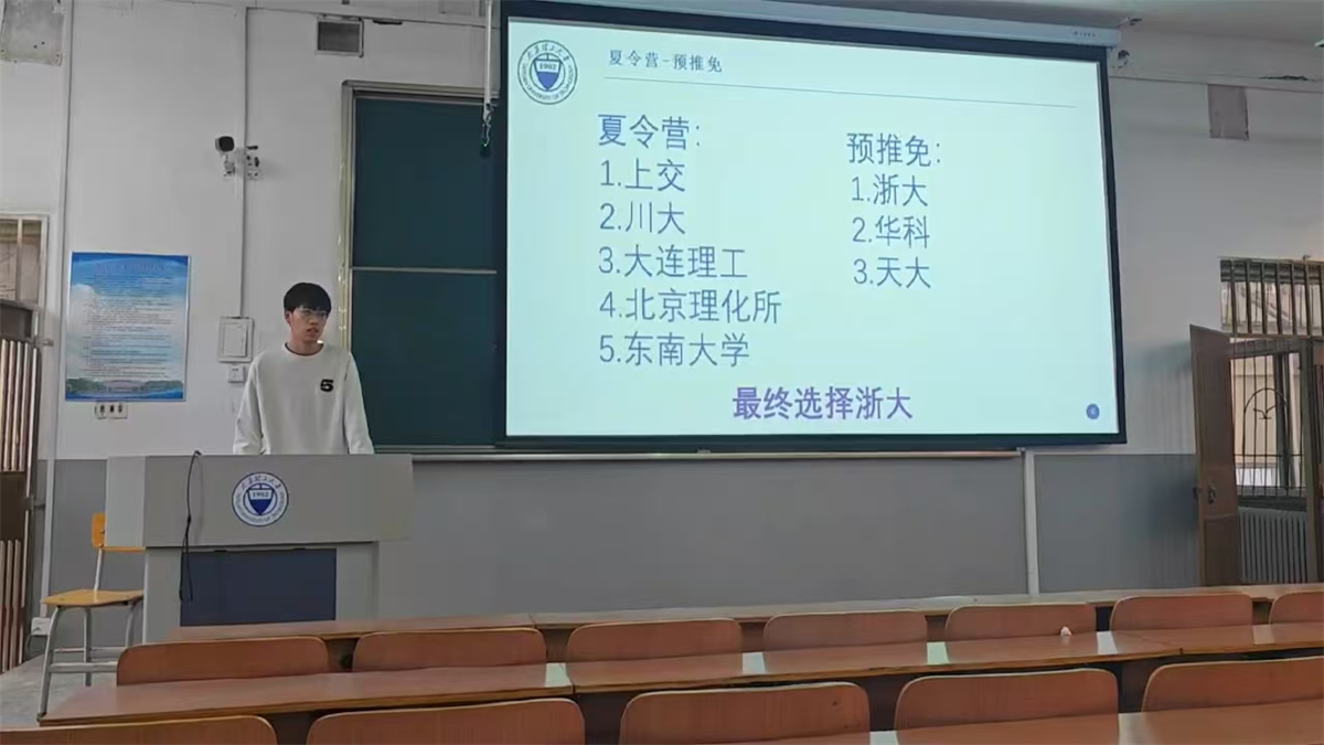 12月6日下午,国家奖学金获得者、已成功保研的能源2103班陈武文同学以及获评国家励志奖学金的能源2101班张磊同学在电机馆3100向能源23级学弟学妹们进行了交流分享。陈武文同学现已推免至浙江大学能源工程学院,他以自身经历为例分别分析大一至大三自身所遇到的问题及个人做法,他建议同学们在大一时要过四六级,大二至大三在保证成绩排名的前提下要参加各项竞赛、搞科研、提高四六级成绩等来丰富自己的科研经历,之后分享了个人对于夏令营与推免院校的选择以及对学弟学妹们的建议;张磊同学获评国家励志奖学金、校级优秀学生干部等荣誉,曾担任太原市青年志愿者协会大学生志愿服务总队副队长以及“电力急先锋”志愿服务队总队长等,他向同学们分享了科研竞赛、兴趣爱好、保研等方面经验,另外他建议同学们要有明确的“目标”、“方向”、“规划”以及“开展”,对个人的未来要详细规划,同时要积极奋进、不断努力,成为更为优秀的人。