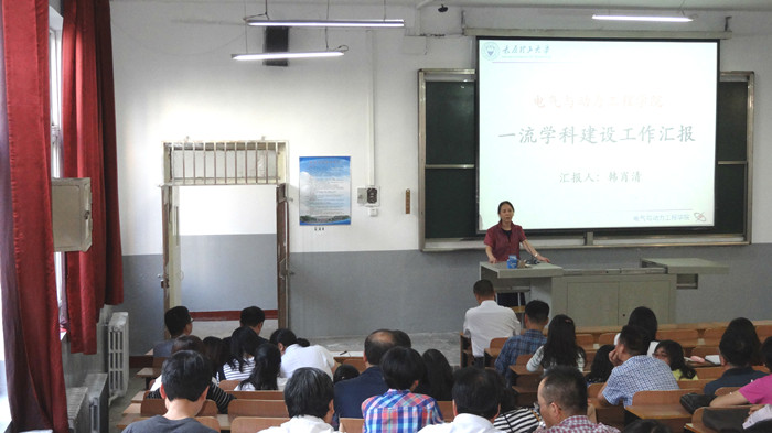 首先,韩肖清院长做了题为《一流学科建设工作汇报》,传达了学校领导在“双一流”建设中的新理念新思想,结合我院的具体专业情况,为全院各教职工在教学科研中如何向学校“一流”学科靠拢指出了具体的目标和方向。