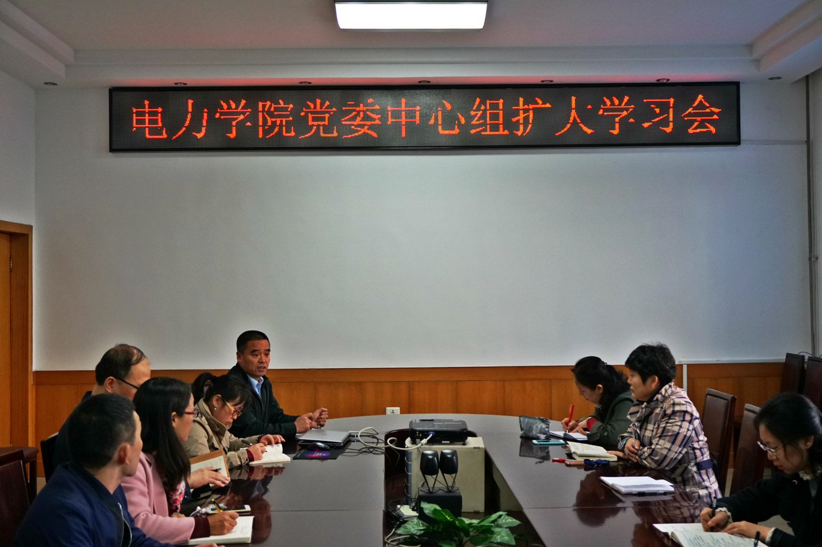 2017年10月19日下午,学院党委中心组(扩大)学习会在电机馆二层会议室举行学习党的十九大精神交流座谈会。学院党政领导、三办主任、团委书记、各支部书记和学生代表参加,会议由党委书记赵惠民主持。
