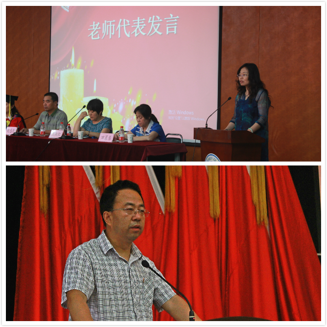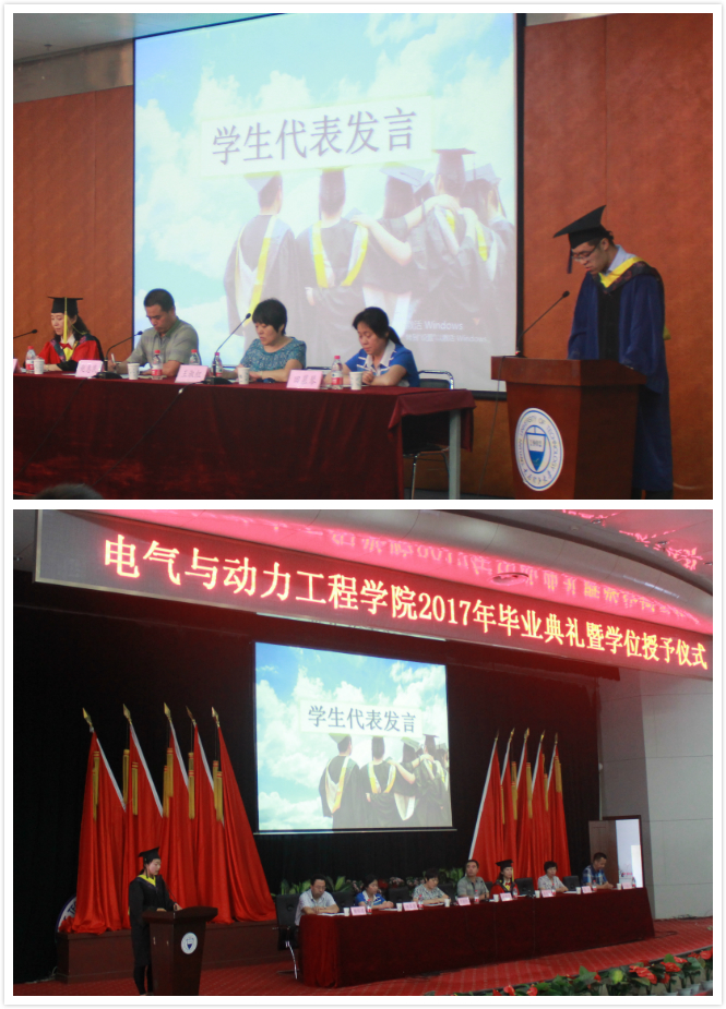 秦文萍 教授、樊保国副教授分别作为教师代表发言,他们用风趣、幽默的语言表达了对同学们的美好祝福和殷切期望,并祝愿全体毕业生前程似锦,希望大家有空常回家看看。