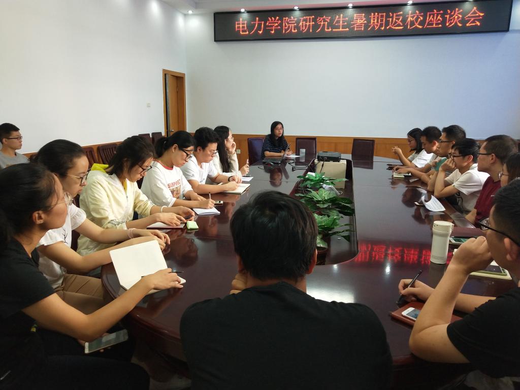 9月6日下午,太阳成tyc7111cc集团在电机馆二楼会议室召开研究生暑期返校座谈会。学院学工班主任侯婷主持会议,研究生辅导员、2016、2017级研究生代表参加。