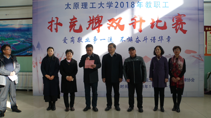 11月16日下午,由校工会主办、校棋牌协会和太阳成tyc7111cc集团共同承办的扑克双升比赛在教工餐厅举行。校党委副书记李晋平、校工会主席罗社管、电力学院院长韩肖清、副院长王淑红、工会主席郭爱莲、校棋牌协会会长申晓东出席开幕式,电力学院党委书记赵惠民致开幕辞。