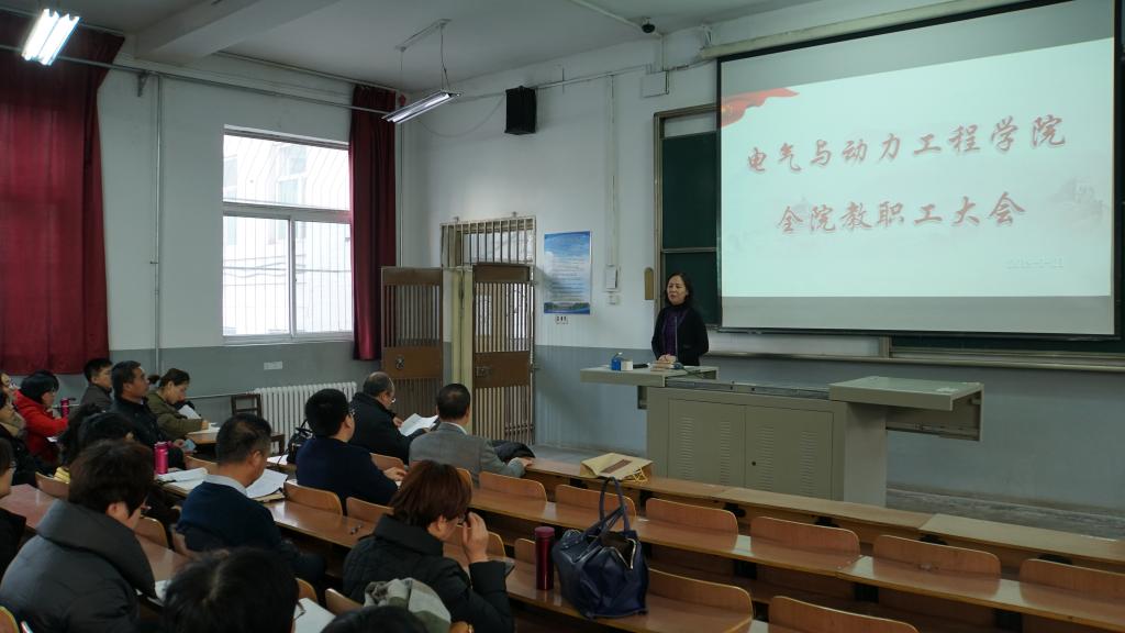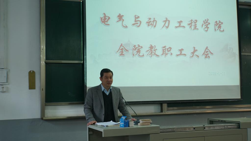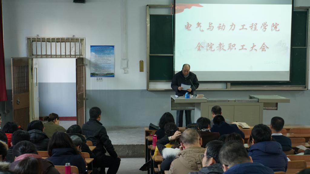 2019年1月21日,太阳成tyc7111cc集团在电机馆3100教室召开了全院教职工大会。校党委常委、副校长吴斗庆,校党委常委、组织部部长贾朝红,学院领党政领导及全院教职工参会。会议由学院党委书记赵惠民主持。