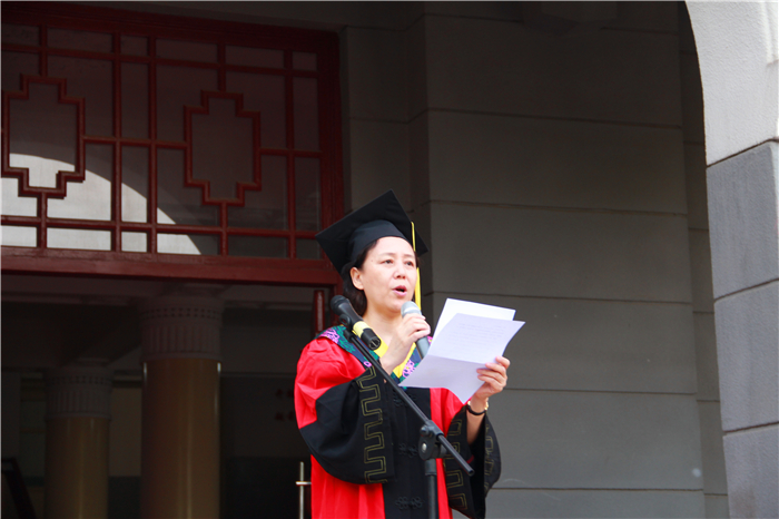 院长韩肖清向毕业生致辞,她代表学院向446名本科生、110名研究生表示了衷心的祝贺!希望同学们感恩境遇、感恩陪伴、感恩时代,以追求卓越的姿态奋勇前行。