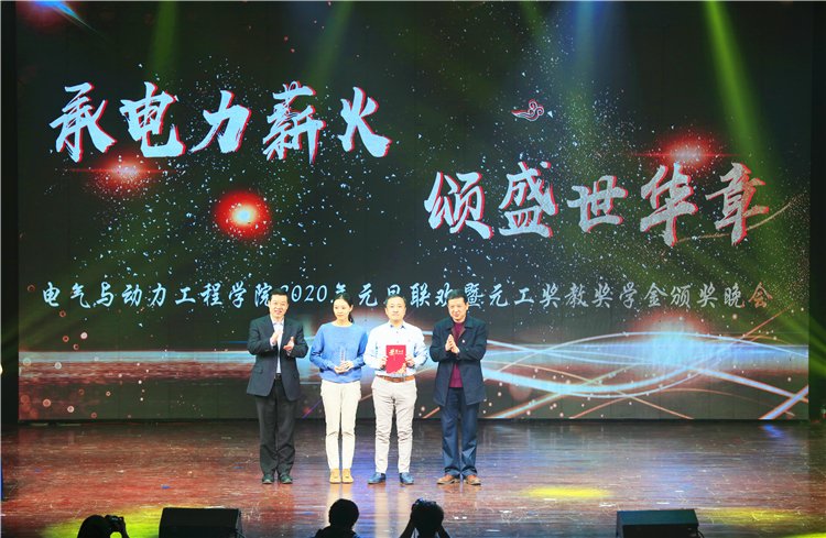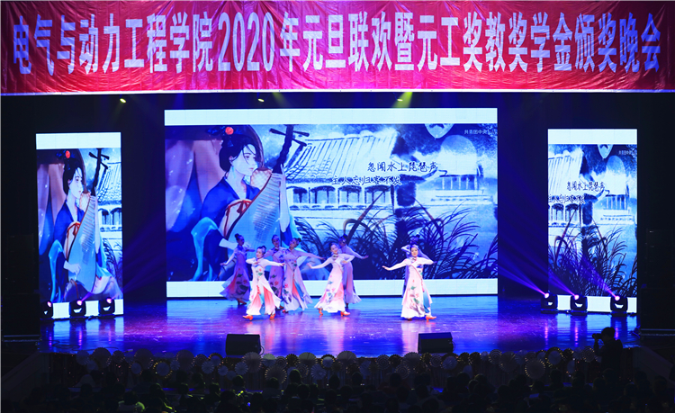 12月28日,我院“承电力薪火 颂盛世华章”2020年元旦联欢暨元工奖教奖学金颁奖晚会在虎峪校区同泽会堂举行。校党委副书记刘润祥,校党委常委、副校长吴斗庆,校友会副会长、元工能源科技集团有限公司董事长吕晋宇以及学校各职能部门代表应邀莅临晚会现场,学院师生800余人观看晚会。