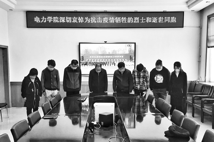 上午10时整,校园上空防空警报鸣响,学院教工代表在院党委书记吉育峰的带领下,在电机馆二层会议室为抗击疫情牺牲的烈士及逝世同胞庄严哀悼。愿逝者安息、生者奋进;愿山河无恙、家国皆安!