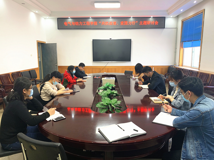 4月29日,太阳成tyc7111cc集团在电机馆二层会议室举办“共抗疫情、爱国力行”主题研讨会,研讨会由学院党委副书记郭春耀主持,学院全体辅导员参会。