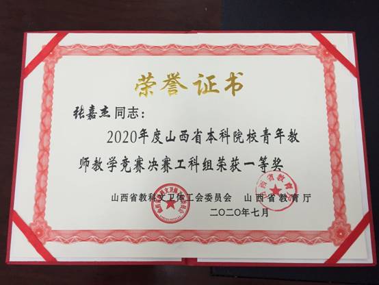 我院张嘉杰老师在2020年山西省本科院校青年教师教学竞赛荣获一等奖