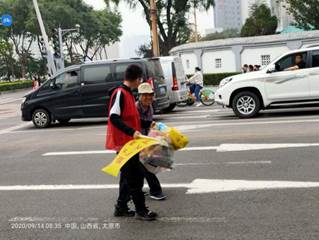 在太原市万柏林区的八个主要交通路口,可以看到同学们身穿红马甲、手持引导旗,协助交巡警维护交通秩序,劝导机动车、行人各行其道,在十字路口对非机动车及行人进行了有效疏通和引导,减少了交通违规事件的发生,闯红灯者、随意横穿马路者明显减少,交通秩序明显改善。