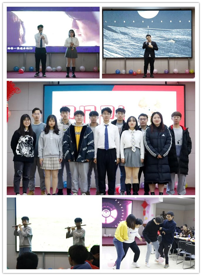 团委老师杨慧瑶致词,对学院学生组织2020年的工作给予充分肯定,向全院同学送上新年的美好祝福。随后,演出在欢快的歌曲《Sparks Fly》中正式拉开帷幕,歌曲、舞蹈、游戏等形式多样的节目精彩纷呈,竹笛合奏《牧民新歌》、相声《洪羊洞》等节目获得全场热烈掌声。联欢会最后,热闹的切蛋糕庆元旦环节将整个活动的气氛推向顶峰。