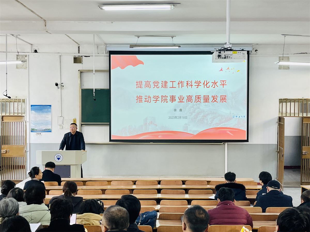 会上,学院党委书记徐鑫作了主题为“提高党建工作科学化水平,推动学院事业高质量发展”的报告。首先,传达了我校春季学期工作会议郑强书记的讲话精神,要求全院上下在校党委的领导下深入学习贯彻党的二十大精神、习近平总书记系列重要讲话重要指示精神和蓝佛安书记的讲话精神,擘画并实现新时期学校发展战略目标;其次,总结了2022年学院党建工作开展情况,学院全体师生以习近平新时代中国特色社会主义思想为指导,以推动学校高质量发展为主题,在党建、疫情防控、团学工作等方面取得了显著成效;三是通报了政治巡察、民主生活会召开等情况;四是从“七个坚持”的维度对下一步工作进行了部署。