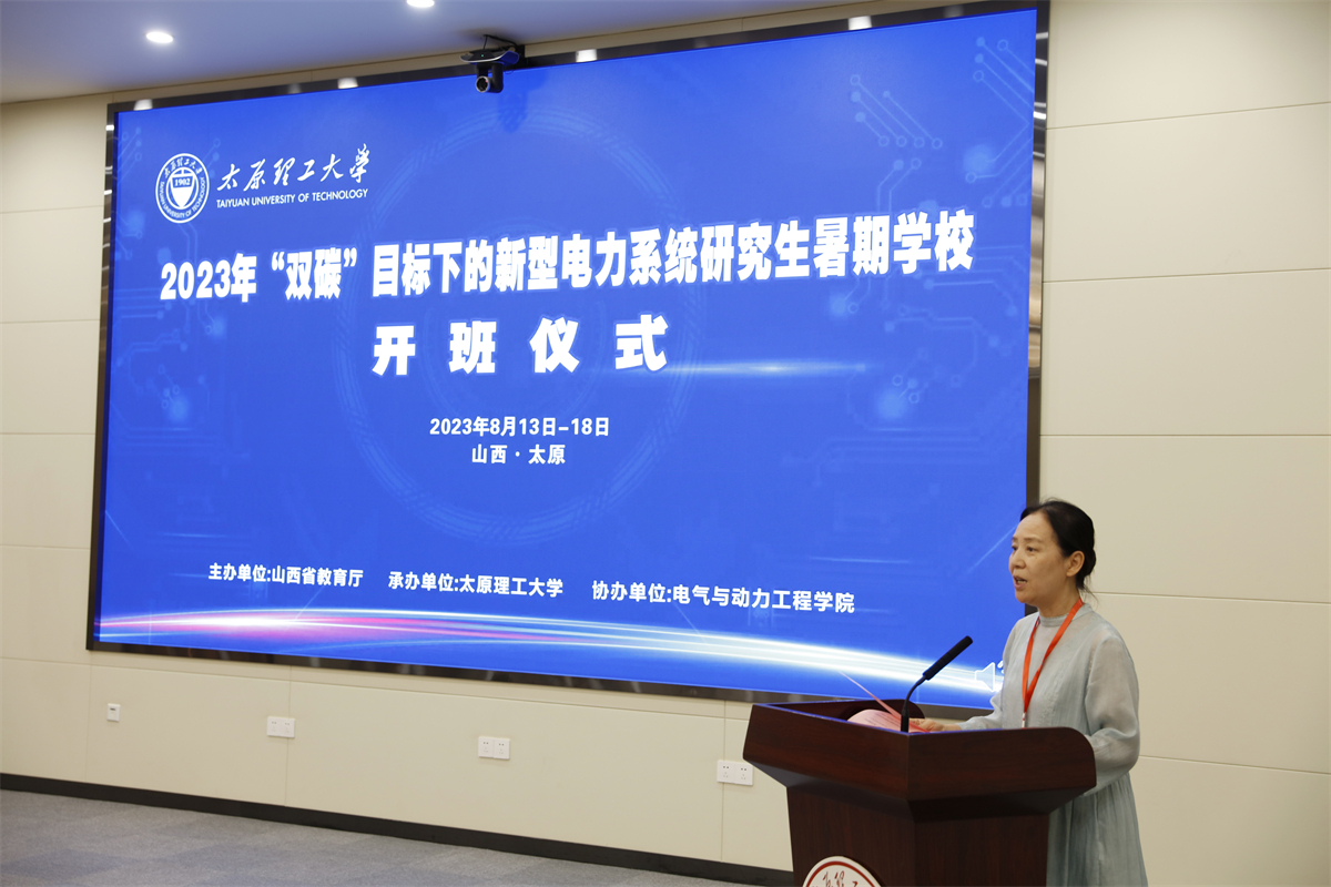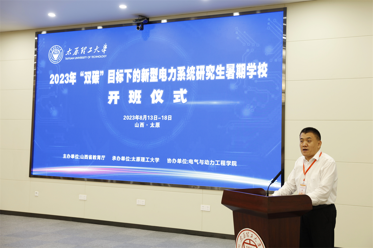 山西省教育厅学位管理与研究生教育处(省人民政府学位委员会办公室) 李坤处长在讲话中指出国家提出实现碳达峰、碳中和目标是一场广泛而深刻的经济社会系统变革,将推动中国能源产业和经济结构转型升级以及发展范式的全面改变。希望暑期学校的开办能培养学生团结协作积极进取的精神,提高学生科学的思维方法和能力。同时对暑期学校的开班表示祝贺,对与会人员表示欢迎,对工作人员表示诚挚问候,结合暑期学校主题对我校电气学科给予了赞许,在致辞中还对开办暑期学校的意义进行了阐述,并衷心希望本次研究生暑期学校能够圆满完成、学生们能够获得实质性的收获。