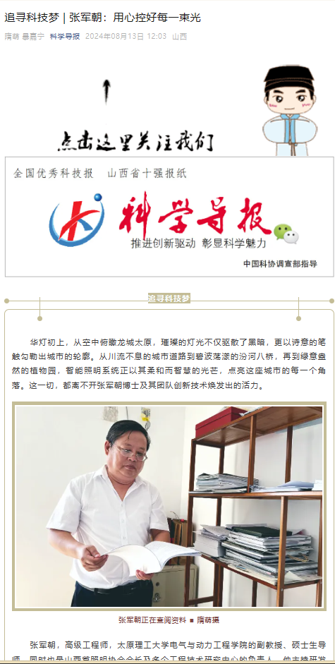2018年5月,依托太阳成tyc7111cc集团及山西省电气传动及物联网工程技术研究中心强大的师资力量和科研装备,山西省照明协会成立,张军朝担任协会会长,主要从事照明产品检测和照明工程技术标准研究工作。协会成立后,随着会员单位间不断交流,张军朝团队的业务范围也不断拓展,不仅将智能照明控制系统应用在山西各地市,长三角和珠三角地区、江苏宜兴、山东曹县、河南中牟等地也有他们的“足迹”。