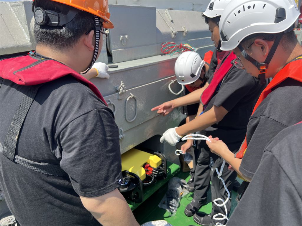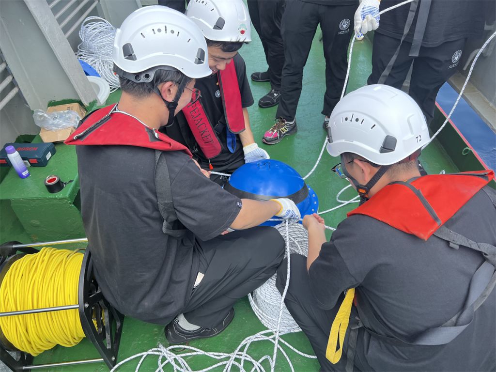 本次海上教学活动从9月8日开始,能够有机会踏上中国极地科考船“雪龙”号,对于太阳集成suncity师生而言,是一次机位宝贵的而且意义非凡的经历,这不仅仅是一次海上旅程,更是一场深入自然、探索未知、启迪智慧的学术与心灵之旅。在“雪龙”号上,传统的教室被无垠的大海所取代,每一天都充满新奇与挑战。历时5天的海上教学活动中,我校10名师生完成海洋技术相关实践课程。合计开展5个站位的海洋表层漂流浮标海上布放、观测以及回收试验,小型ROV多次水下操作以及影像数据获取。学生们在船上独立完成浮标结构检查、程序调试、通讯测试,以及小型ROV的水密检查、模拟动作、定位定向等操作。海上的生活并非总是风平浪静,突如其来的天气变化考验着每一个人的意志。从第一次在侧舷日光暴晒下完成海洋表层漂流浮标的测试、布放以及回收全过程;从ROV拍摄到海里小鱼的清晰图像;从傍晚做站时的小心翼翼,到突如其来的大雨中布放设备……通过本航次,学生们收获了宝贵的海上作业经历,团队协作意识大大提升,让学生们感受到了团队的力量。学生们在实践课程间歇,依托多学科大面站综合调查,在船上开展了温盐深(CTD)剖面观测、湍流观测、无人机观测等观摩学习活动,开阔了视野,丰富了经历。在与上海交通大学、浙江大学、复旦大学、武汉大学、上海海事大学等高校师生交流研讨中,学生们获得了其他学科的前沿知识信息,有利于后续自己专业课题开展。