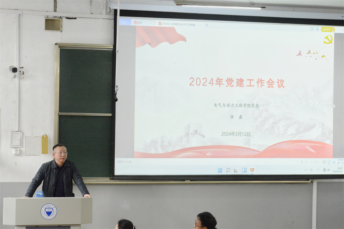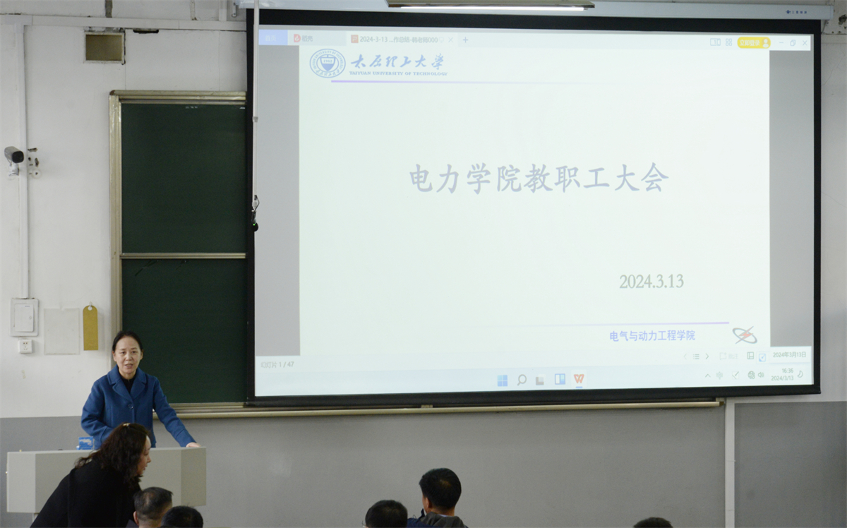 为推动学院新学期各项工作有序进行,进一步凝聚力量,促进学院高质量发展,加快评估建设步伐,3月13日下午,我院在电机馆3100教室召开2024年教职工大会,传达学习学校寒假工作部署会精神,总结2023年学院工作,部署新学期主要工作。院党委书记徐鑫主持会议,院长韩肖清、党委副书记郭春耀、副院长窦银科、续欣莹及学院全体教职工参加会议。
