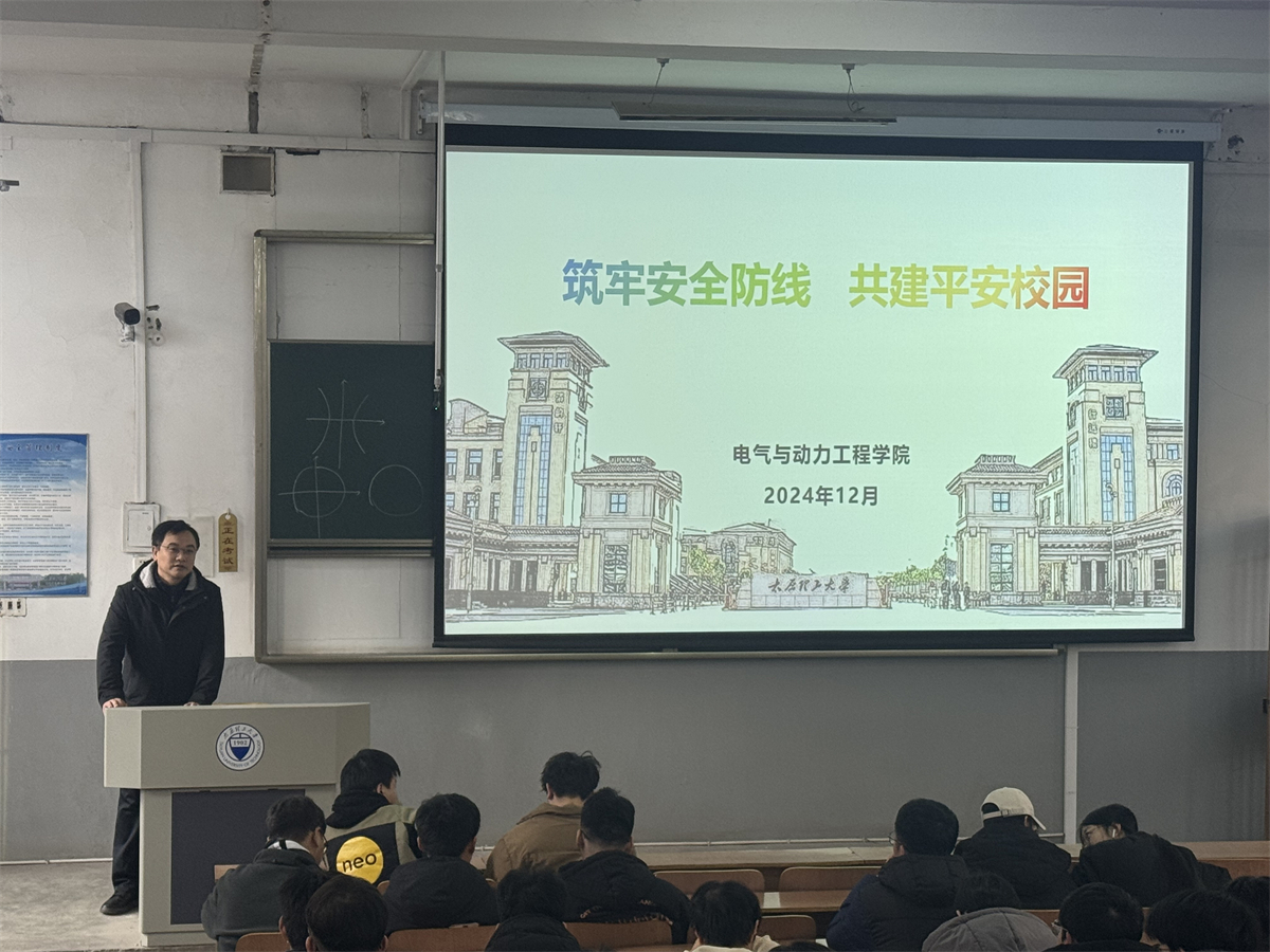 为增强我院师生的安全意识,全面宣传《山西省平安建设条例》,引导师生群众积极参与平安校园建设实践,推动平安建设重点任务落实落地,根据《关于组织开展 2024年度平安建设宣传周活动的通知》,学院积极响应,12月9日开展安全教育系列讲座。本次活动邀请学校保卫处的消防科科长王元及消防应急专家、校实验室安全宣讲团讲师乔晓磊、太原市公安局直属分局指挥室副主任、太原市公安局反诈讲师王安瑞警官主讲,学院副院长续欣莹主持。