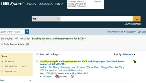 近日,我院韩肖清教授领衔的电力系统运行与控制山西省重点实验室撰写的学术长文Stability Analysis and Improvement forSSCB with Single-gate Controlled Series-connected SiC MOSFETs》被IEEE协会旗下电气电子领域顶级期刊IEEE Transactions on Industrial Electronics(中科院一区TOPIF=7.515)接收并在线发表(EarlyAccess),该文第一作者为任宇副教授,通讯作者为韩肖清教授,太阳集成suncity为第一完成单位,西安交通大学为合作单位。