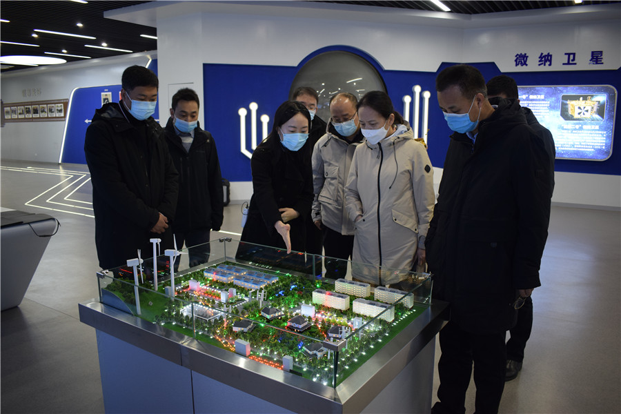 在吕梁协同创新研究院院长秦亮、副院长夏韩卿等领导陪同下,韩肖清一行参观了极具科技感的高性能云计算中心、微纳卫星展示平台、无人机系统和现有的能源互联网系统。