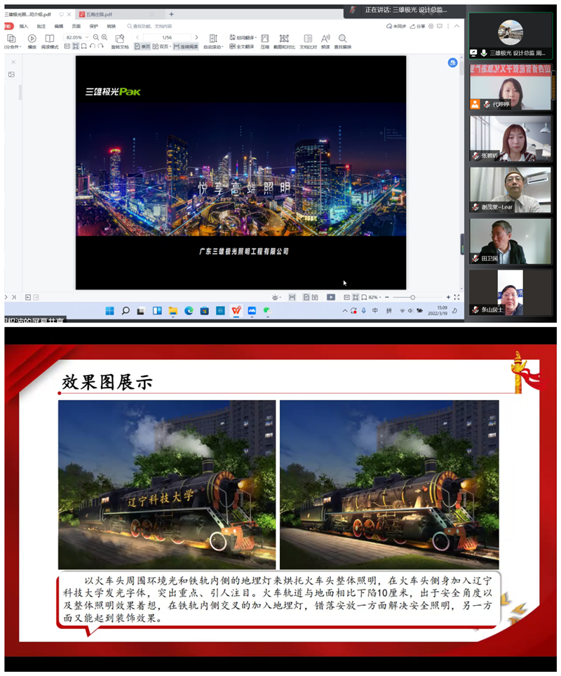 三雄极光户外照明设计总监周权波、华人照明设计师联合会(CLDA) 会长谢茂堂、太原市政设计院田卫国教授、我院张军朝副教授以及大赛各协办单位的专家教授、指导老师、参赛队员等共计86人参加了本次线上视频技术交流会。山西省照明协会张碧娇老师主持了本次会议。