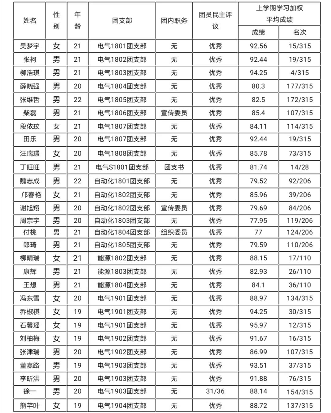 为切实保证发展新党员的质量,将团员中的优秀分子推荐给党组织,保证党组织的先进性与纯洁性,经个人申报、团支部民主评议、学院团委认真审核,现将审核后的推优结果公示如下:
