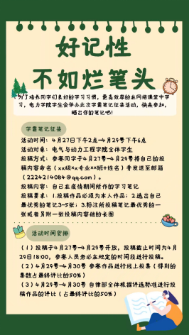 “好记性不如烂笔头”学霸笔记征集活动旨在增强学生们在家自我学习、主动学习的意识,通过鼓励优秀的学生作品、为大家树榜样,提高了我院同学的学习热情。共收集到高质量的“学霸笔记”62份,现阶段已开启线上投票,有效票数632票,最具人气的笔记有效票数139票。