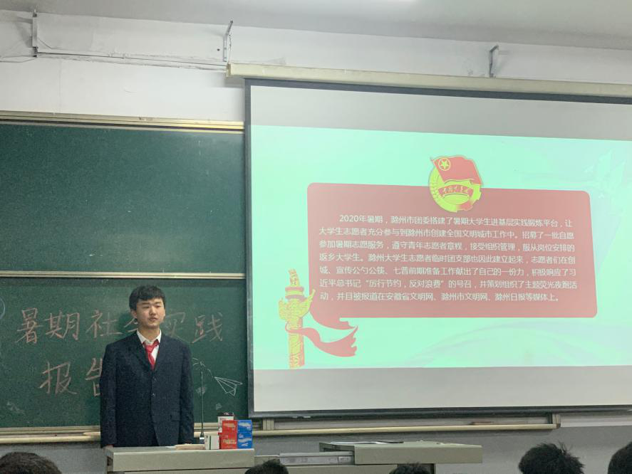 为了展示同学们优秀的暑期社会实践成果,让同学们充分感受到暑期社会实践的诸多益处,提高同学们参与社会实践活动的积极性,由太阳成tyc7111cc集团主办的2020年“青年大学习·奋斗新时代”暑期社会实践汇报会于2020年10月19日晚在电机馆3100教室开展,由每个团队依次进行汇报,讲述他们的暑期实践经历和收获。