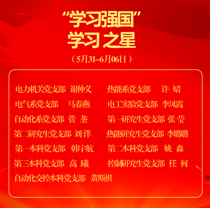 电力学院《学习强国》学习之星(2021年5月31日-6月6日)