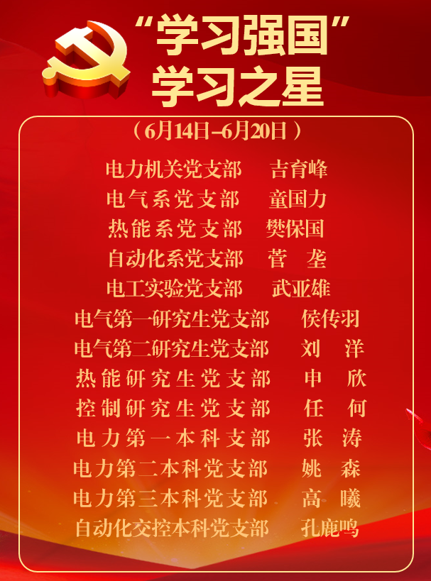 电力学院《学习强国》学习之星(2021年6月14日-6月20日)