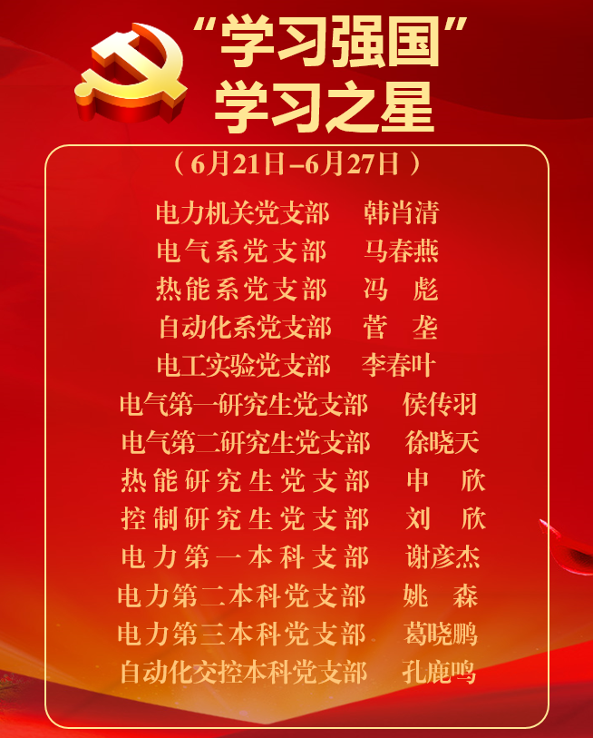 电力学院《学习强国》学习之星(2021年6月21日-6月27日)