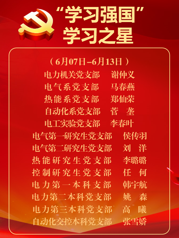 电力学院《学习强国》学习之星(2021年6月7日-6月13日)