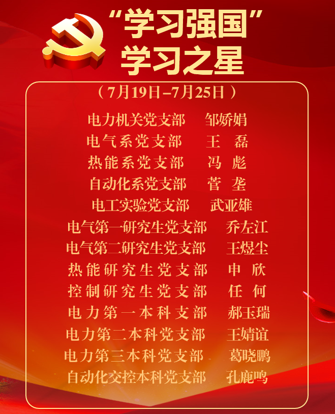 电力学院《学习强国》学习之星(2021年7月19日-7月25日)