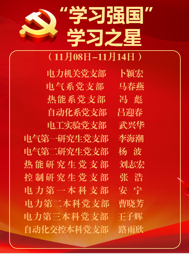 电力学院《学习强国》学习之星(2021年11月8日-11月14日)