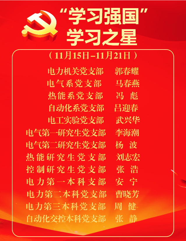 电力学院《学习强国》学习之星(2021年11月15日-11月21日)