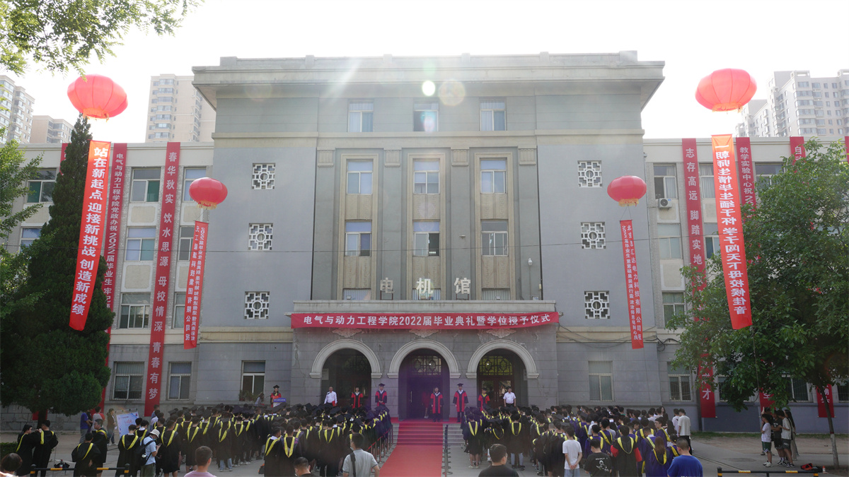 On June 3, CEPE held a grand graduation ceremony and degree conferring ceremony for the 2022 class in front of the Electrical Machine Hall. Yonggui Du, the former director of the Department of Automation, Jinyu Lv, the alumnus of the 97thClass of Electrical Engineering Department, the vice president of the Alumni Association and the chairman of Yuan Gong Energy Technology Group Co., Xiaoqing Han, the dean, Chunyao Guo, the deputy secretary of the Party Committee, Yinke Dou, the deputy dean, Xinying Xu, the deputy dean, as well as the members of the Degree Committee of the College, the department heads, counselors and all graduates attended the ceremony. The ceremony was hosted by Xin Xu, the secretary of the Party Committee of the CEPE.